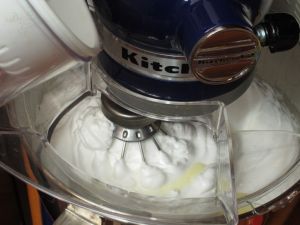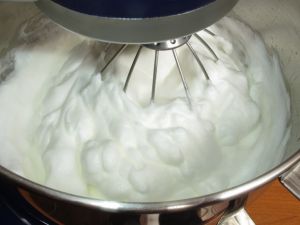 Se adaugă zahărul, romul şi sucul de lămâie. Se bate în continuare.
